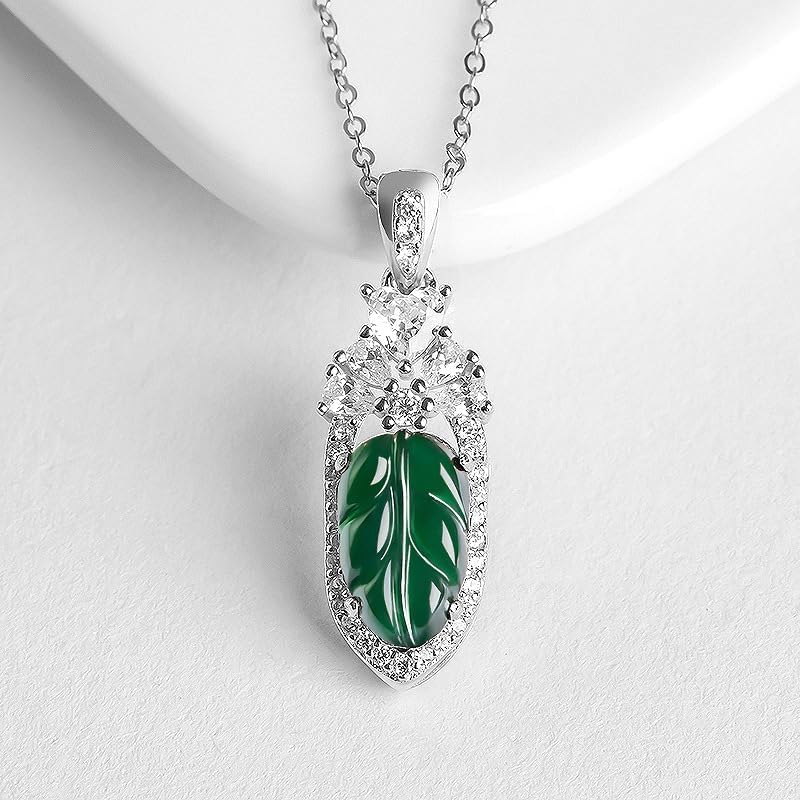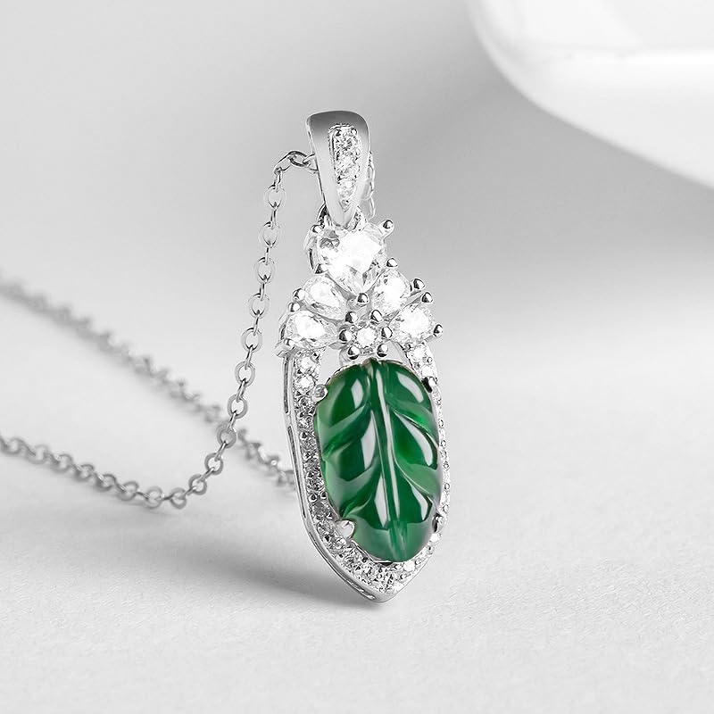 【Unique Design】This sun green leaf jade pendant necklace is made with S925 silver setting, presenting a unique and meaningful gift for modern people. Its bright sun-green jadeite, intricately set in silver, symbolizes vitality and rebirth. It is the perfect combination of contemporary elegance and the timeless beauty of emerald. Perfect for those who appreciate jewelry with a deeper meaning, it adds a touch of natural style sophistication to any outfit.
