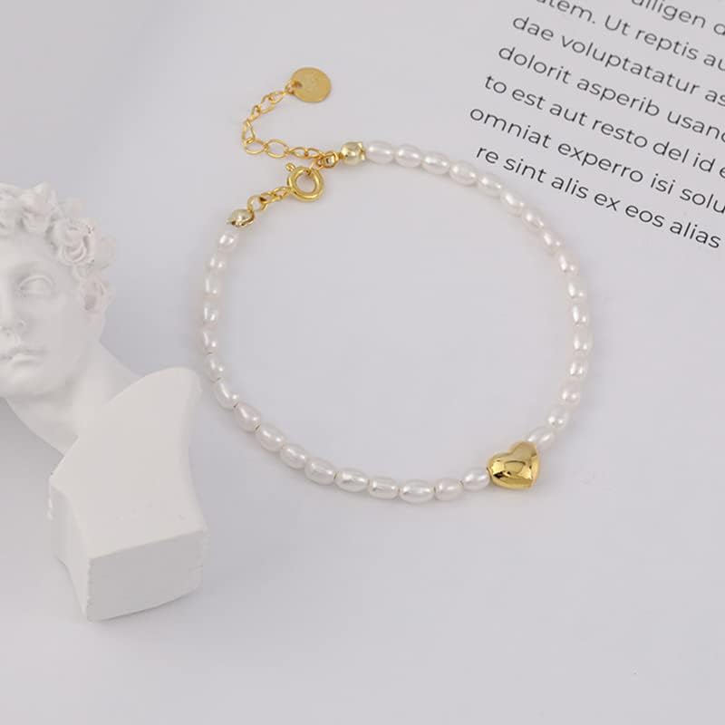 Home Bracelet Gold White Pearl Bracelet for Women,Dainty Freshwater Cultured Pearl Beaded Link Bracelet,Fashion Pearl Jewelry Gift for Her