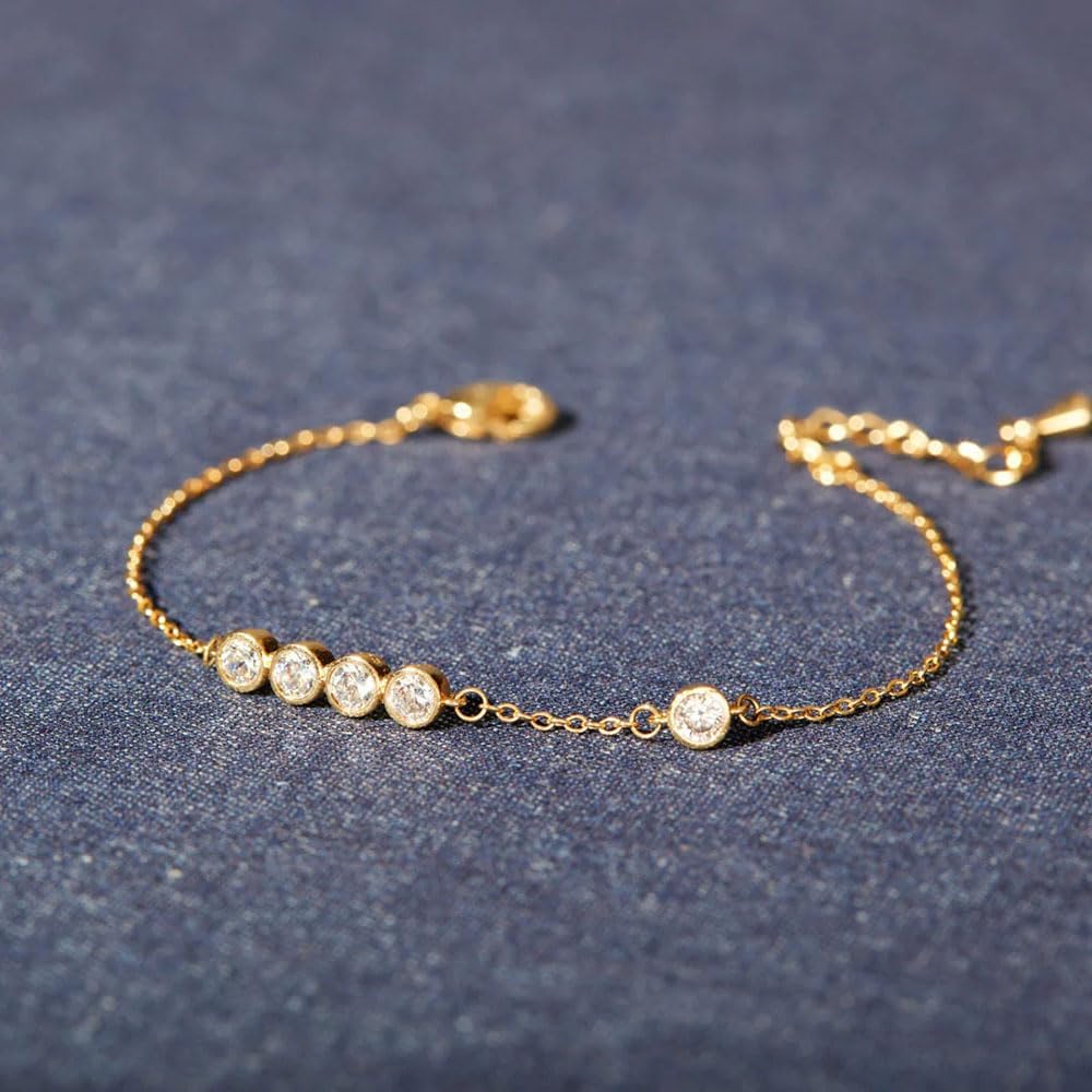 【Stunning Design】This luxurious women’s bracelet, crafted from premium 14K gold, boasts a dainty thin chain with an adjustable design. Its highlight is the Bezel-Set round cut VVS1 D color Moissanite, lending a touch of sparkle that is sure to get noticed.