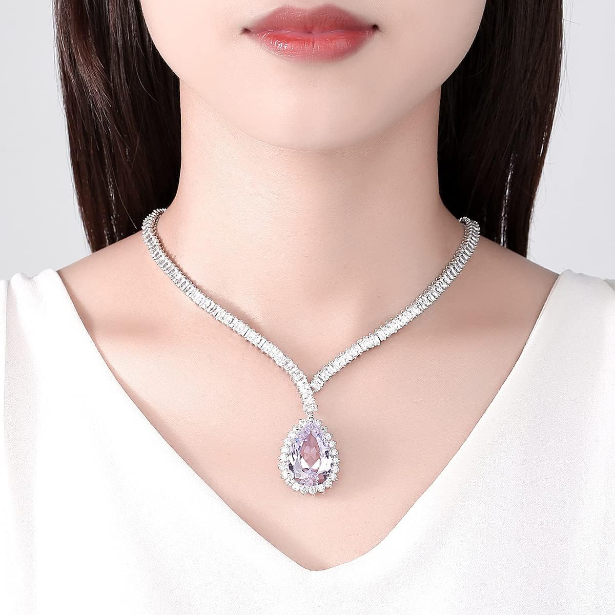 【Unique Design】This exquisite jewelry set includes a gorgeous necklace and a pair of dazzling earrings, inlaid with natural crystals and sparkling moissanite, fashion and elegant to show your beauty, it is the most suitable jewelry set for wedding and banquet occasions .