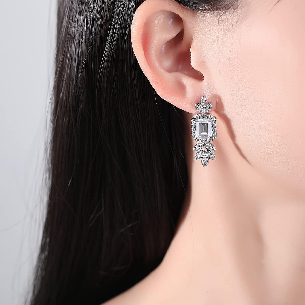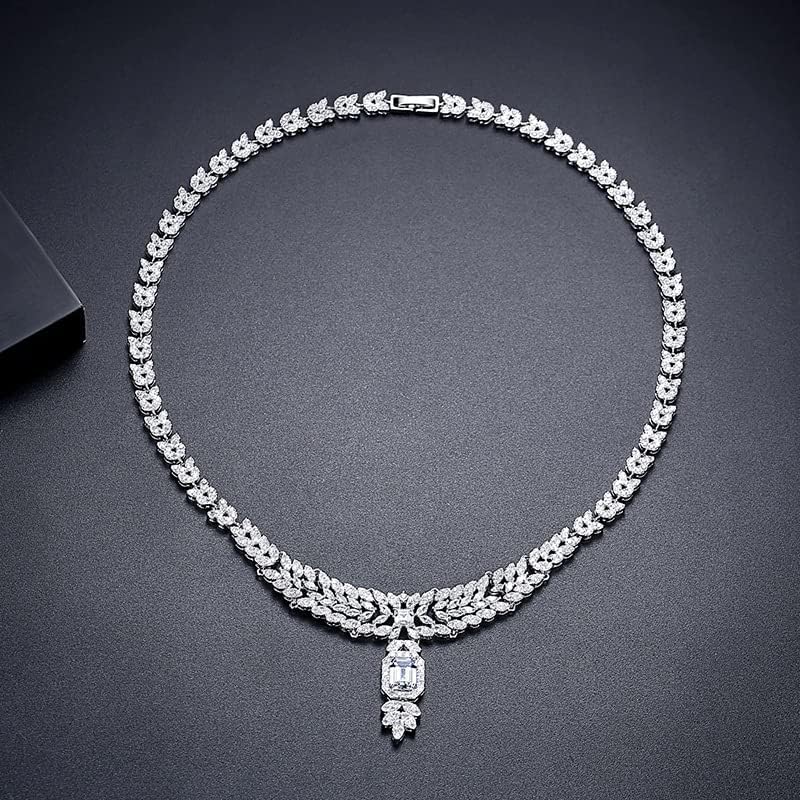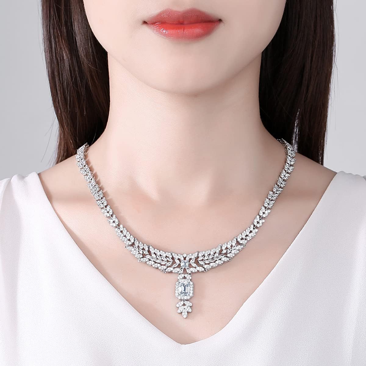【Luxury Design】Gorgeous necklace and earrings make up this exquisite jewelry set, inlaid with natural crystals and sparkling moissanite, classic and elegant to show your beauty, it is the most suitable jewelry set for wedding and engagement occasions.