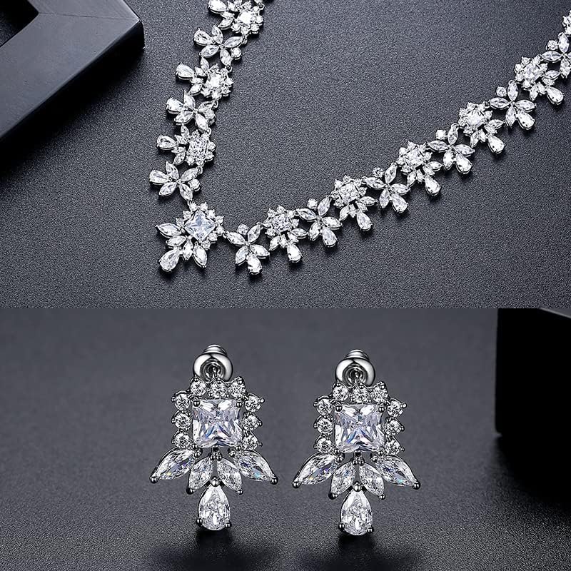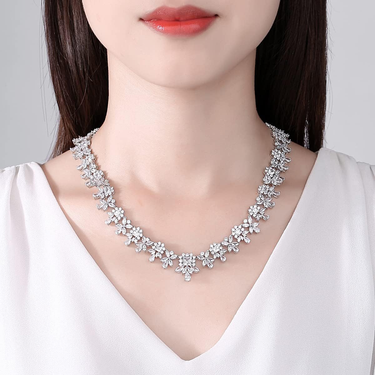 【Luxury Design】Gorgeous necklace and earrings make up this exquisite jewelry set, inlaid with natural crystals and sparkling moissanite, classic and elegant to show your beauty, it is the most suitable jewelry set for wedding and engagement occasions.
