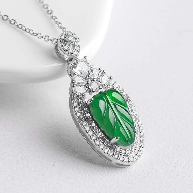Home Jade Green Ice Jade Pendant Necklace, S925 Silver Fully Inlaid, Ideal Gift for Holiday or Birthday