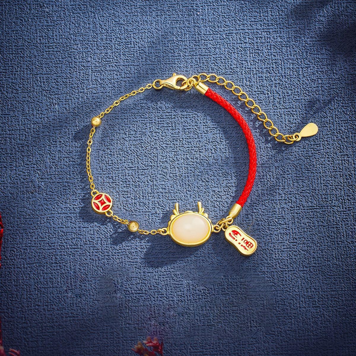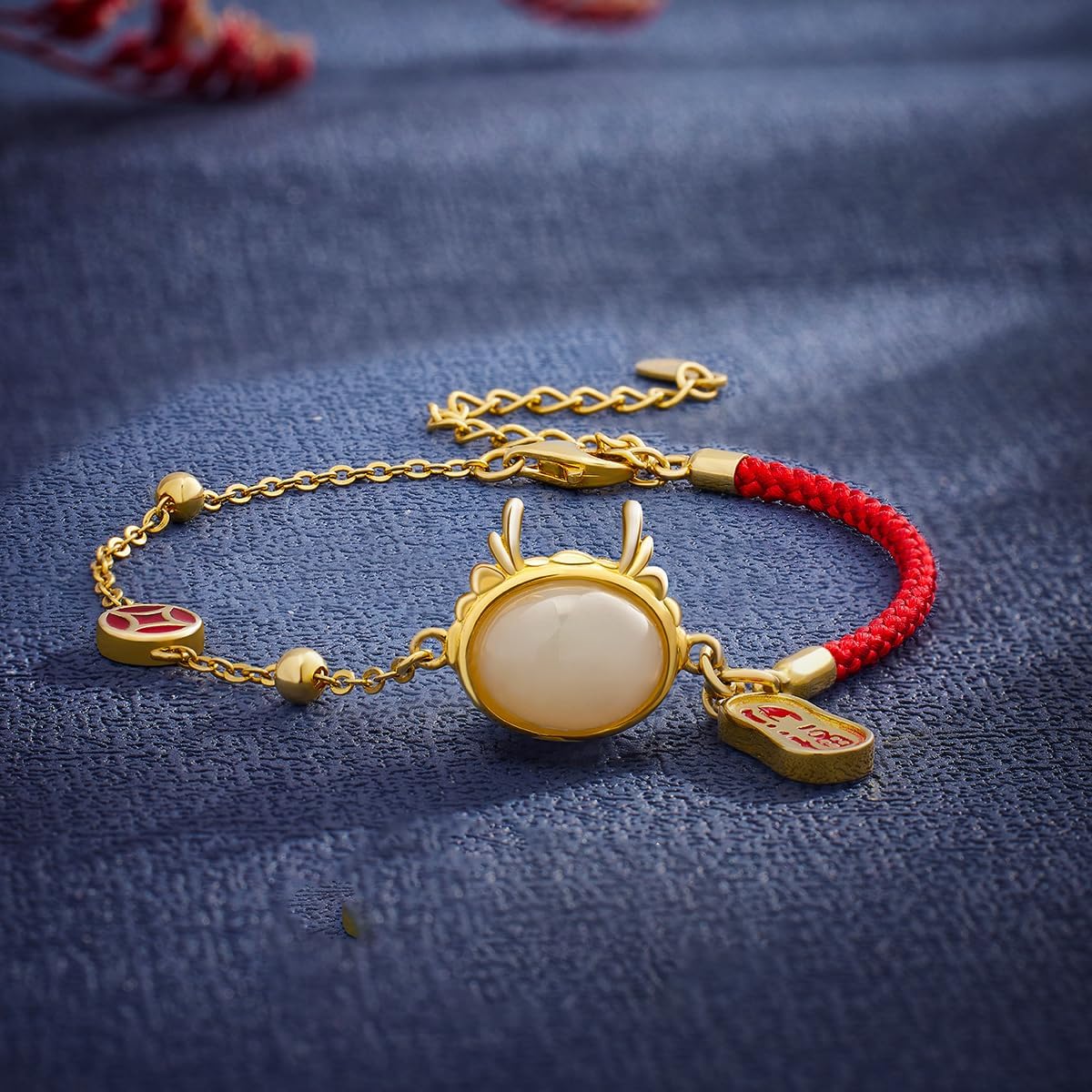 In 14K Gold, a Dragon Year Zodiac Hetian Jade Bracelet, a Lunar New Year Blessing Waist Charm Moissanite Bracelet, representing a Women’s New Chinese-style National Tide Gift.