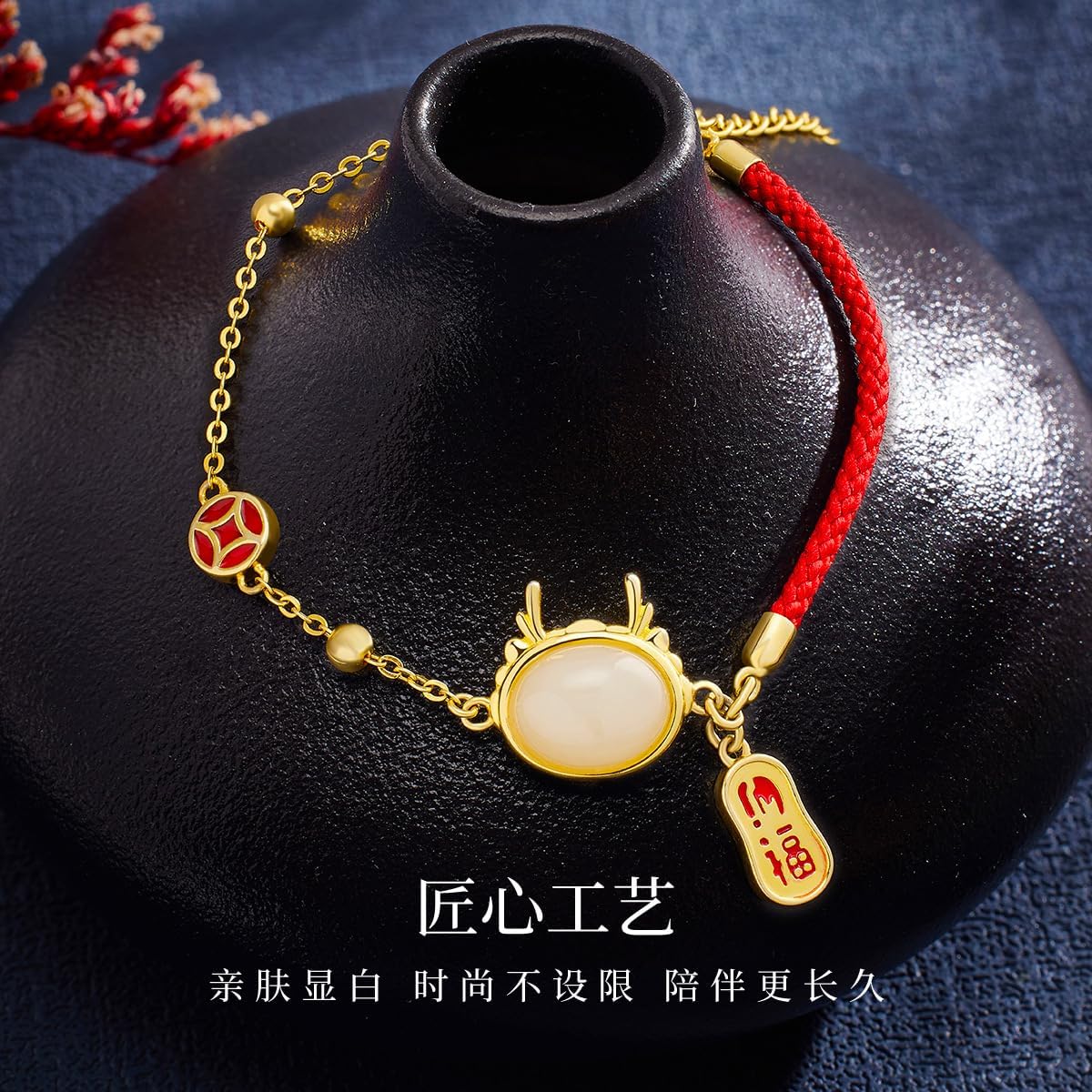 Home Jade In 14K Gold, a Dragon Year Zodiac Hetian Jade Bracelet, a Lunar New Year Blessing Waist Charm Moissanite Bracelet, representing a Women’s New Chinese-style National Tide Gift.