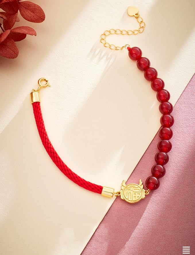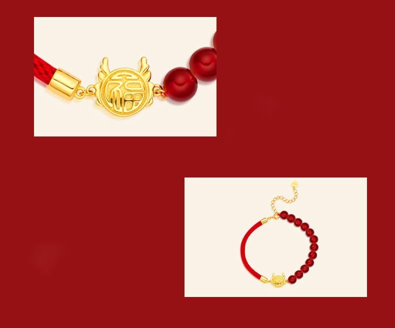 【Elegant Design】This stunning bracelet embodies traditional Chinese elements with a contemporary twist, featuring a lucky dragon motif and vibrant red rope.