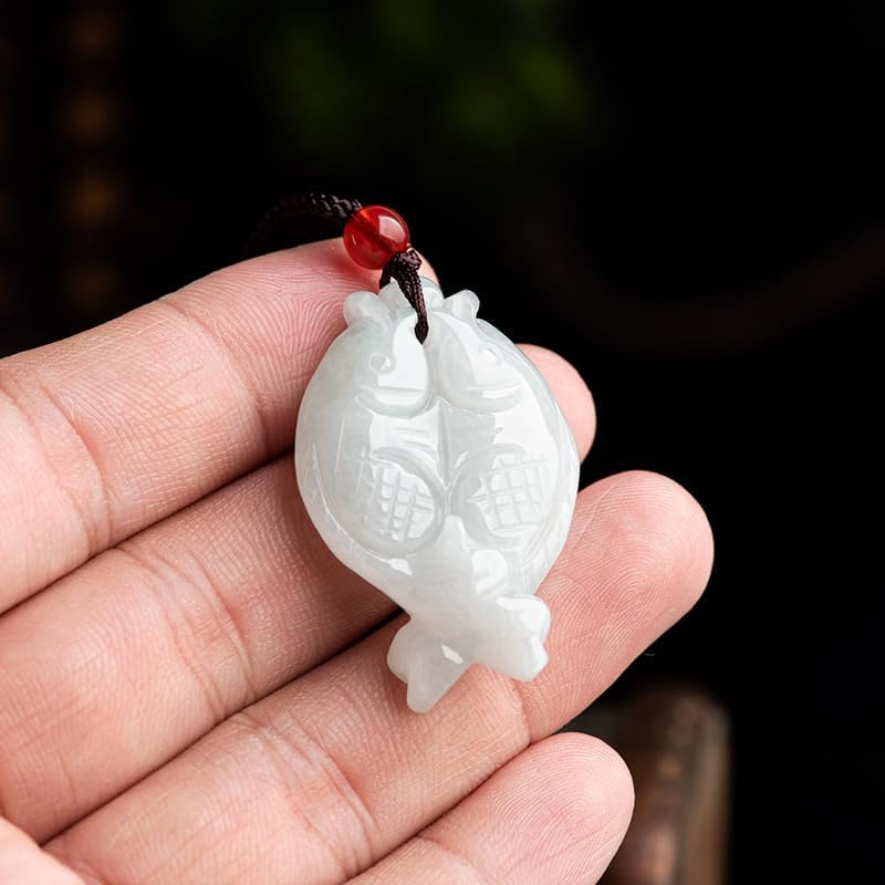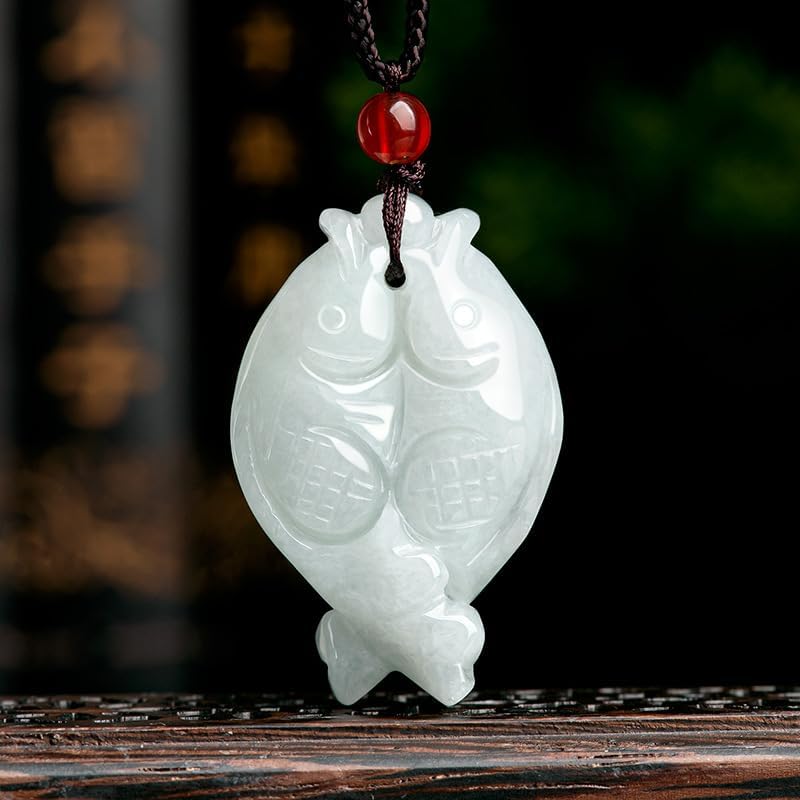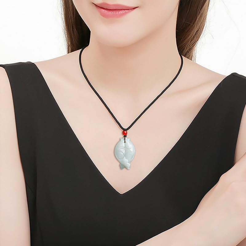 Luxurious & Lucky Natural Jade Necklace – Intricately Designed Double Fish Pendant as a Symbol of Abundance & Good Fortune A Beautiful Token to Celebrate Life’s Significant Moments