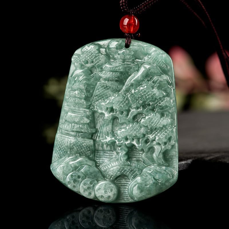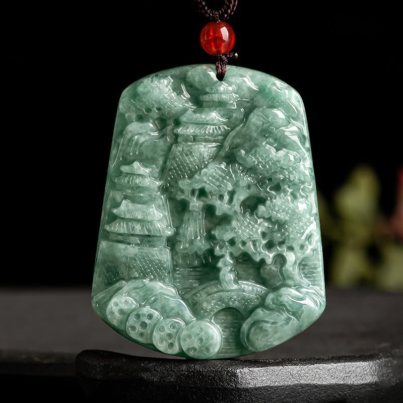 【Unique Design】Stunning Natural Grade A Jade Necklace with Shanshui Brand Jade Pendant, capturing picturesque landscapes in jade. Ideal for festivals or unforgettable birthday present.