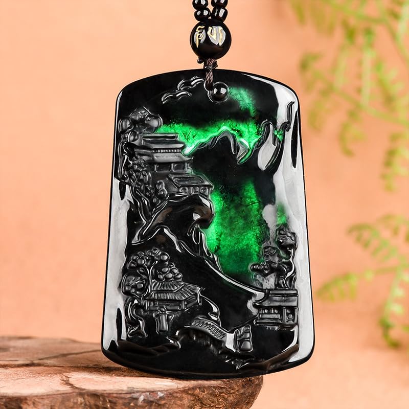 【Unique Design】Unique Design – The Natural Ink Jade Pendant Necklace, with its serene Ink Jade Pendant, embodies a peaceful blessing. This necklace is a talisman of harmony, wisdom, and prosperity, representing the tranquil and wise aspects of nature. Ideal gift for anyone seeking a connection with the natural world and its timeless wisdom. Perfect blend of art, spirituality, and fashion.