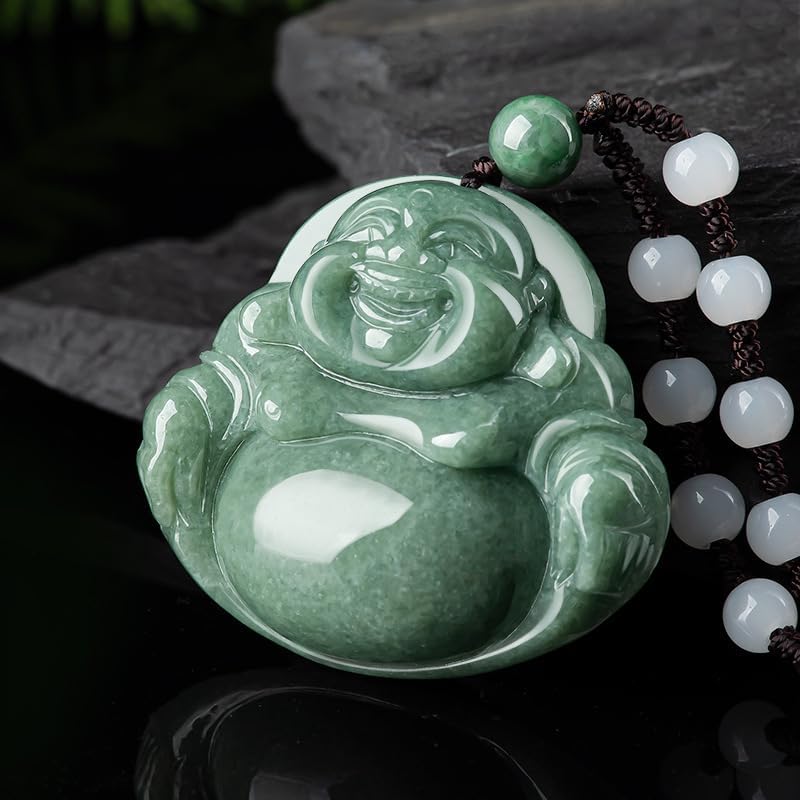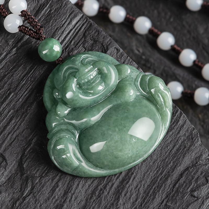 Home Jade Sophisticated Blue Water Jade Buddha Necklace – Joyful Maitreya Pendant for Luck & Grace – Unique Gift Symbolizing Happiness and Prosperity