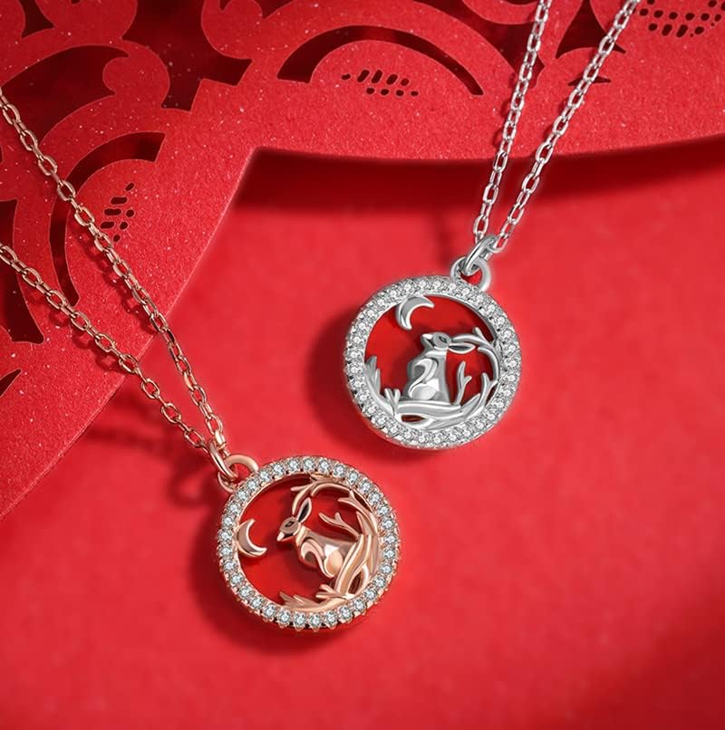 【Designer Words】Elevate your collection with our stunning moissanite rabbit necklace. The round pendant is engraved with a charming rabbit gazing at the moon, surrounded by a row of moissanite stones. Perfect for anyone who seeks unique jewelry.