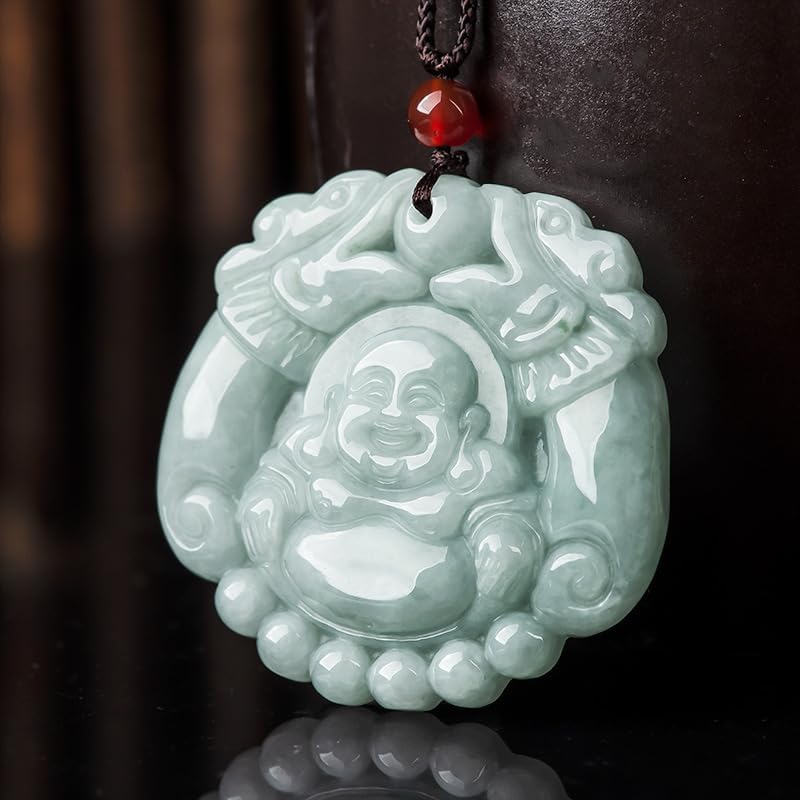 【Designer Words】Introducing our Stunning Natural Jade Necklace with a unique twin dragon & Maitreya Buddha pendant. The floating jade design resonates with eternal happiness & blessings, a true symbol of optimism and joy. Wear it as a statement of positivity and enchantment in every stride.