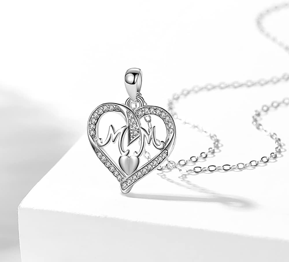 【Perfect Design】This product of a heart-shaped necklace features four distinct and original pendant designs, each specially crafted to celebrate Mother’s Day. Each pendant is designed with a heart-shaped hollow and features the letters “MOM” inside. The heart-shaped hollow is adorned with sparkling Moissanite gemstones, which add a touch of elegance and refinement to the design and add a touch of sophistication and grace to the necklace.
