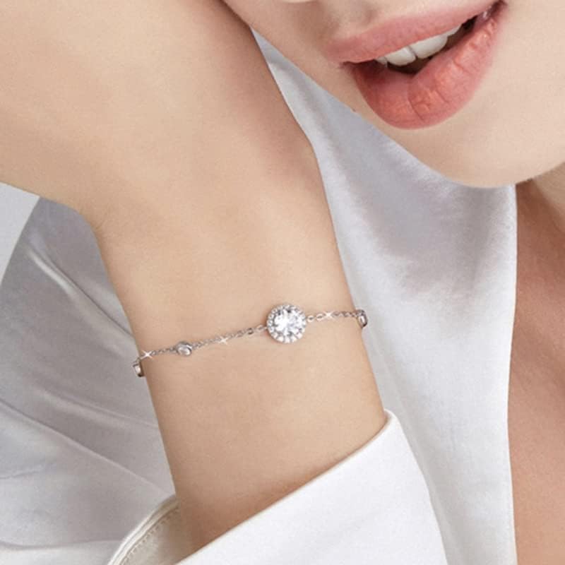 Home Bracelet White Gold Blue Moissanite Bracelet for Women,Dainty Solitaire Stone Design Bracelet with Round Halo Chain,Fashion Jewelry Gift for Her
