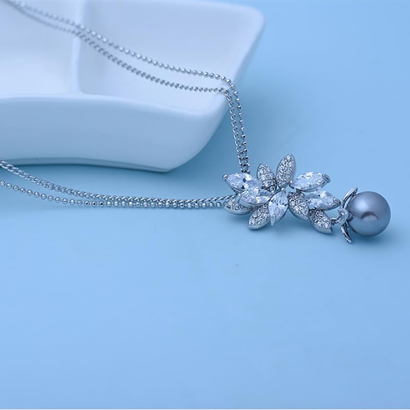【Exquisite Design】The flower and butterfly shape decorations with crystals are perfectly combined with pearls, rich in layers, this necklace is suitable for all occasions.