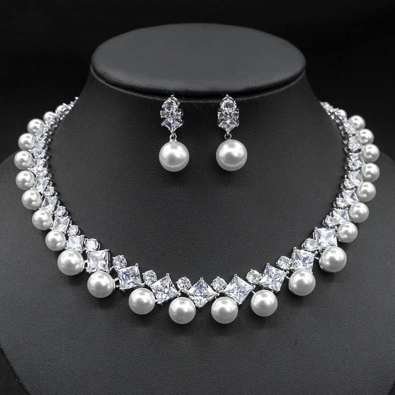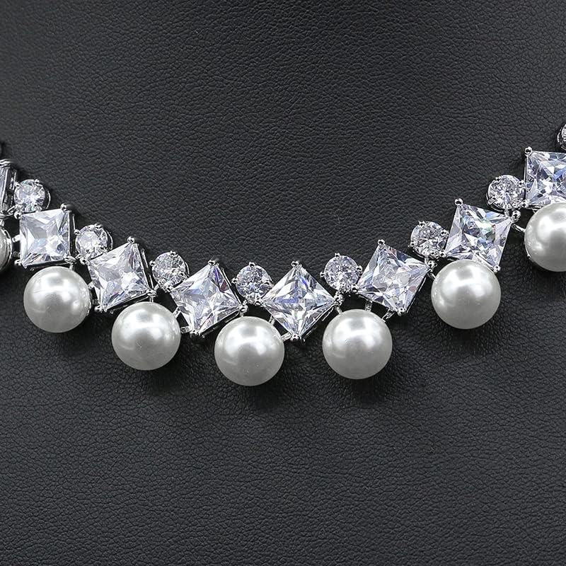【Perfect Design】This is a sparkling jewelry set consisting of a choker necklace and a pair of drop earrings, inlaid with natural crystals and freshwater pearls, it is the most suitable jewelry set for wedding and engagement occasions.
