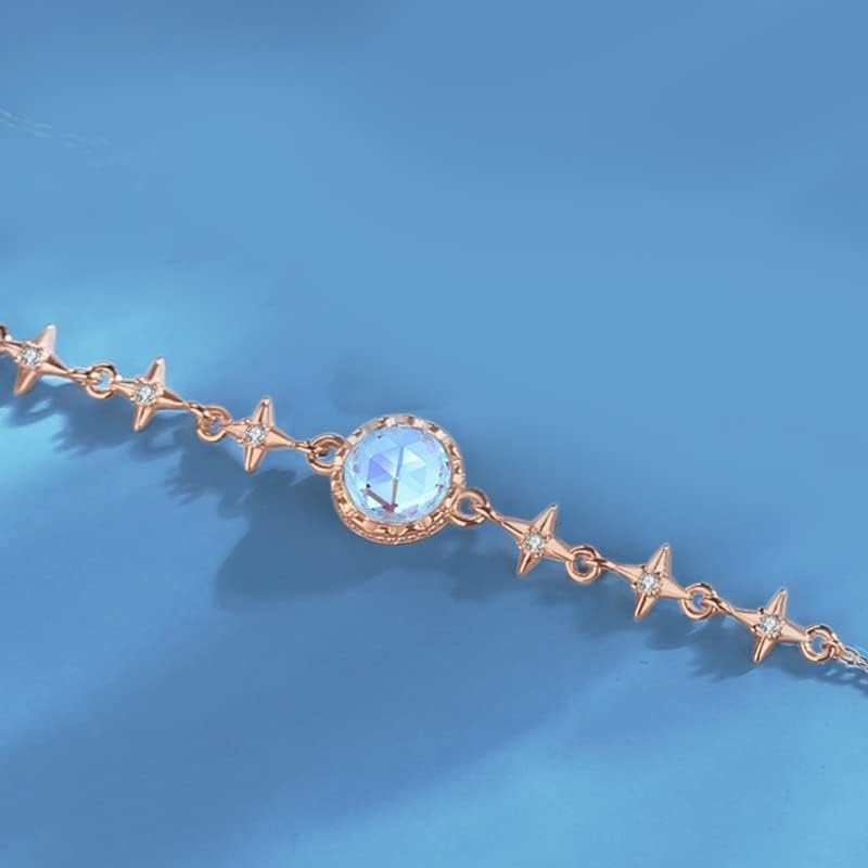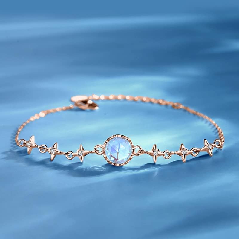 Home Bracelet Women’s Bracelet, Delicate Star Moissanite & Round Opal Halo Design, Ideal Gift for Her, Fashionable Opal Jewelry