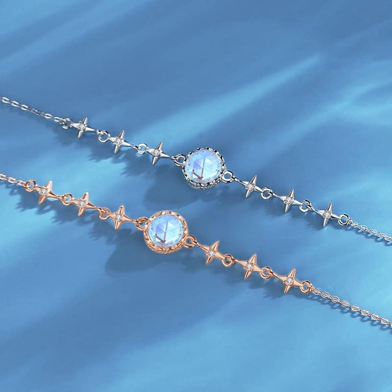 【Elegant Design】White gold bracelet, a round blue opal is inlaid with a circle of smaller moissanite bezels, full of layers, and will reflect different colors under the illumination of light or sunlight.