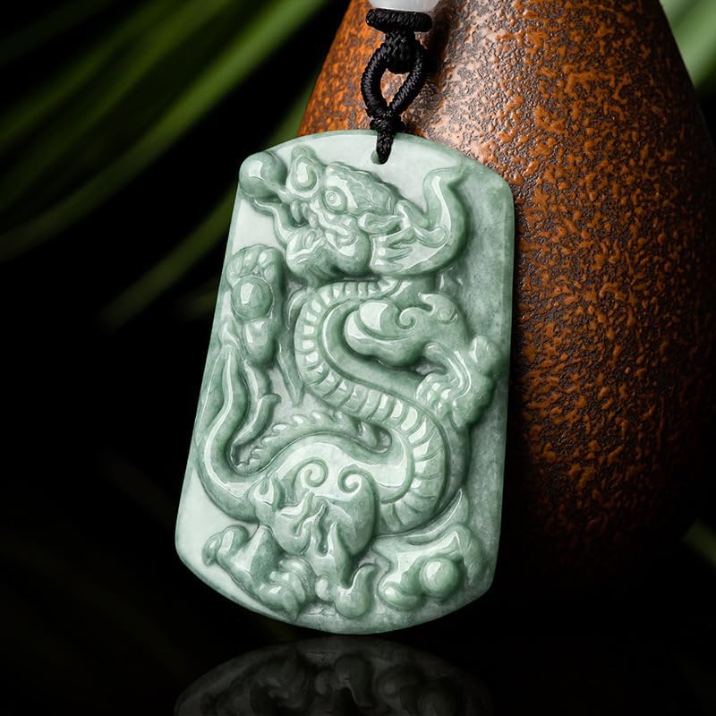 Home Jade Xianglong Blessing Pendant Necklace, Jade Bean Green Dragon Pendant Jade Necklace, Makes a Wonderful Gift for Family and Friends on Special Occasions